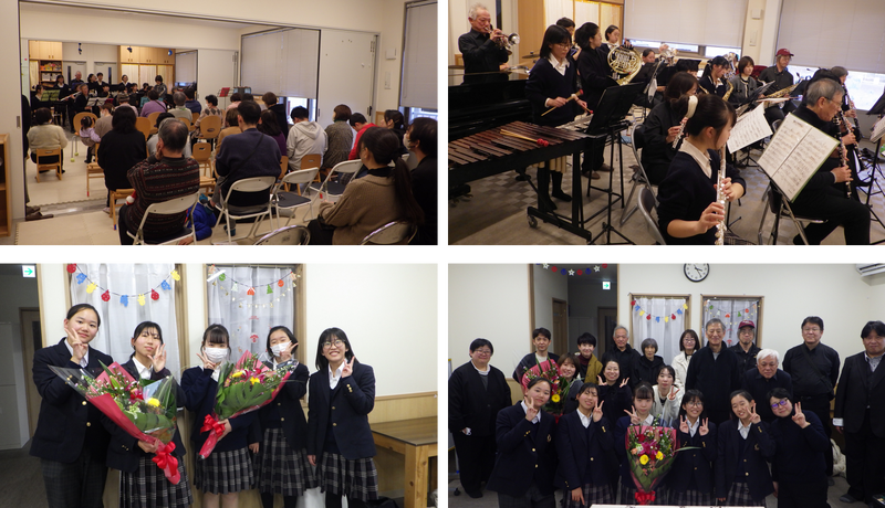 12月20日(土)、藤岡市の児童発達支援センター「ぽけっと」にて、藤岡市民吹奏楽団と共にクリスマス演奏会に参加しました。先月から市吹の皆さんと練習を重ね、有名なクリスマスソングなど全曲を演奏し、会場は大盛り上がりでした。